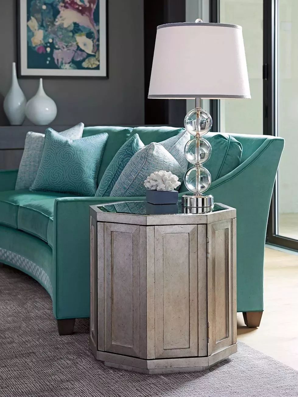 还好莱克星顿就有这么一件Rochelle八角茶几或边几,高级的银箔手工漆面,装饰线富有层次感,深色钢化玻璃茶几镜面能避免摆件的剐蹭,经久耐用。