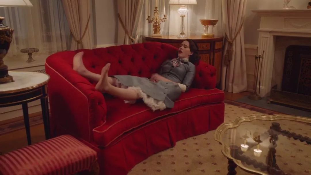 再回来看剧,女主和她爸妈家的沙发、靠椅、床等所有的面料软包质感舒适,一看就是高级面料。时刻精致的女主躺起来,也舒适到忘记了hold住仪容仪表。