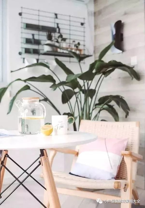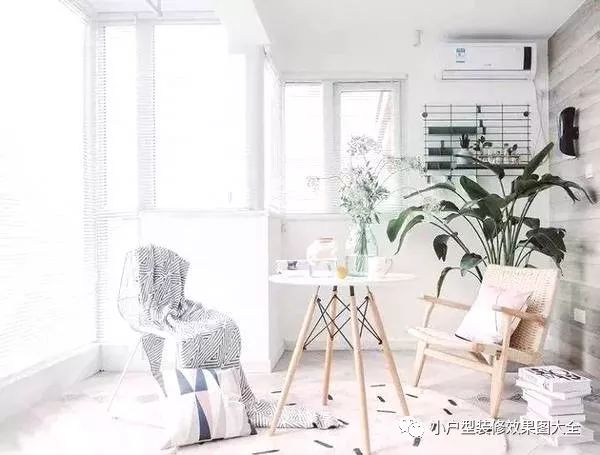 阳台的这个设计,是一个很好的下午茶时间,简易舒适的两把座椅,一张小圆桌,旁边绿植装饰,悠悠闲闲,自自在在。