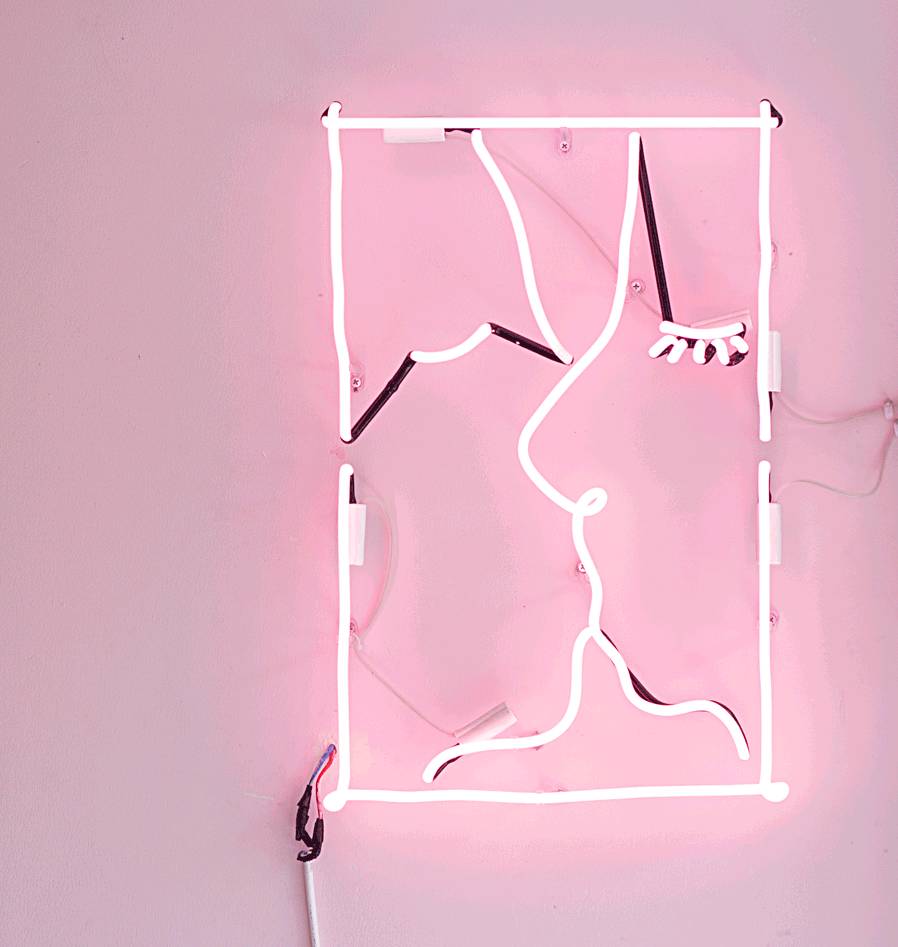 荧光灯做的大大logo和品牌名称,入夜之后亮起蓝绿白的颜色,在白天的可爱清晰少女风之上又增添的一点时髦和梦幻的感觉,非常吸引人。
