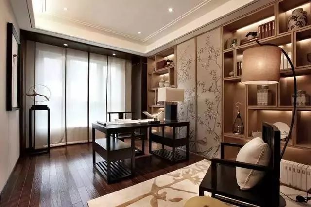 6 | 所谓温柔有气质说的就是这款书房吧,山水屏风搭配博古架,传统的中式韵味,再加上温暖的配色,在这种环境下很难分心。