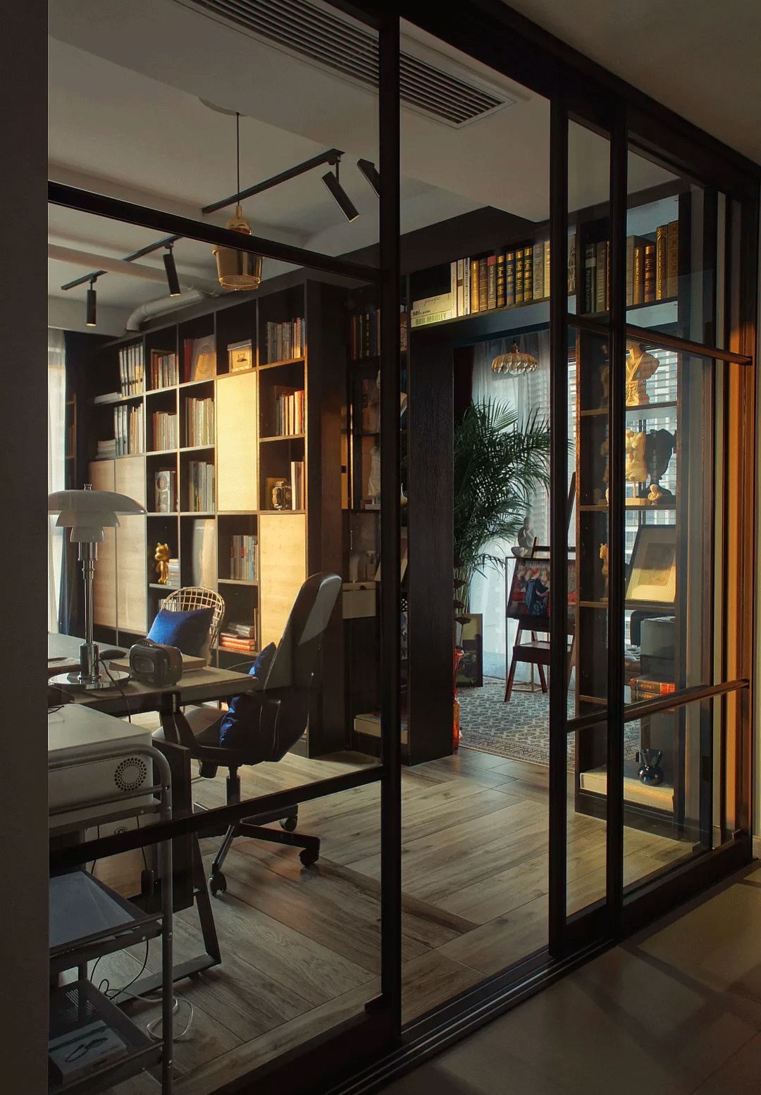 像书房用的是玻璃隔断和移门,视觉上更通透。