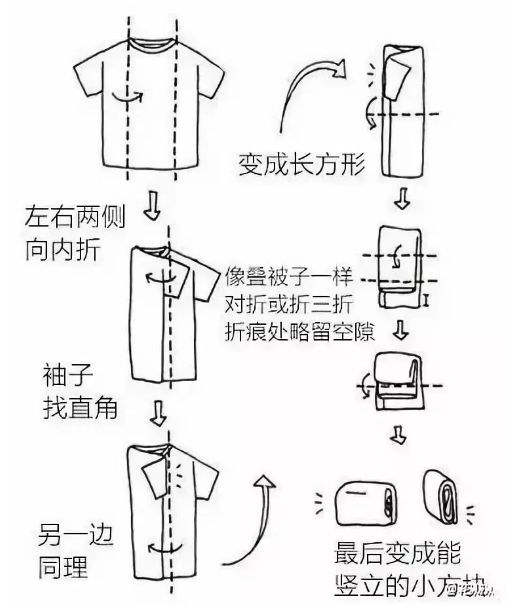 首先衣物要分门别类叠好,同一种类叠成一样的大小,然后记得一定要竖着放。因为如果你把叠好的衣服一层一层的放在一起的话,只要你动了下面一件,那么整个“大楼”就有轰然倒塌的危险,是不是很气!