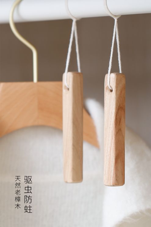 湿度一高就容易滋养细菌和虫子,防虫的话樟脑丸大家都是知道的吧,但是呢,樟脑丸的味道有点大有点刺鼻可,以用香樟木条代替。衣柜里面、抽屉里面都可以放几个,一些特别重要的衣物,也可以单独在衣服口袋里放一点。