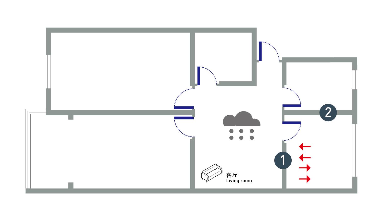 第一:1号墙面的拆除,立竿见影的达到了两个好处,不仅让整体空间更加开阔,而且消灭了一个暗厅。