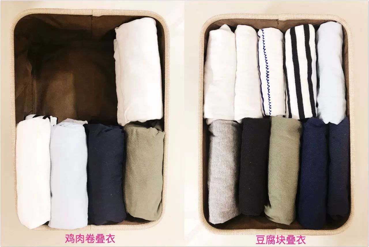 要说最省空间的叠衣服方法一定是把衣服卷起来光卷起来还不够一定要加上这个动作哦⏬视频时长9分钟,请在WiFi下观看没有WiFi也不要紧,贴心如我给你们准备了GIF版关于鸡肉卷叠衣法,嘿姐不是第一次教大家了。基本原则就是各种衣物翻出一条边,然后把衣服边卷边包进去。TIPS就是卷的时候,小手用点力气,把