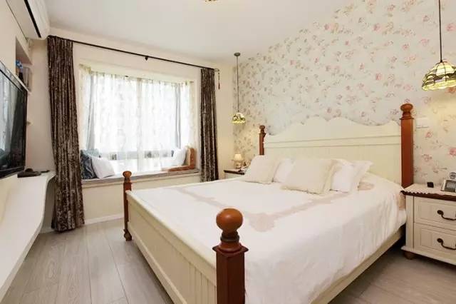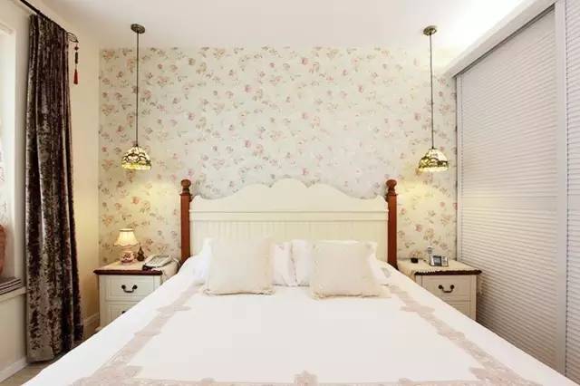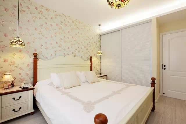 主卧侧景,床头的吊灯个性十足却不失田园味。