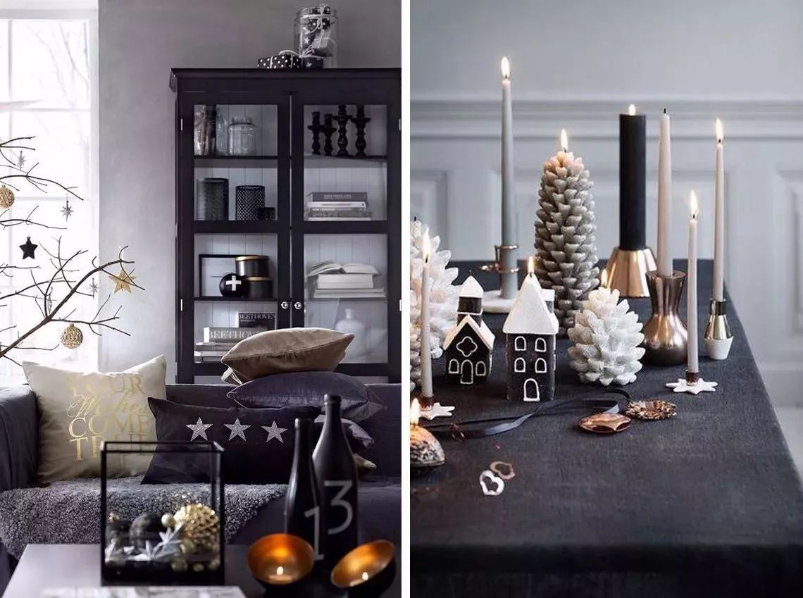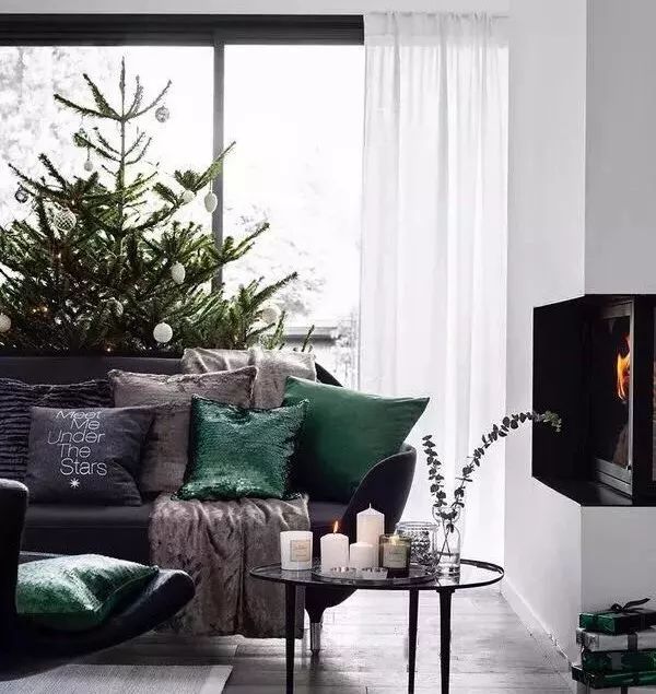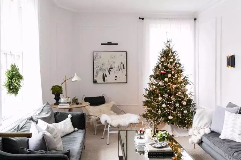 家居风格简洁的,圣诞装饰可以丰富一些,显得家里更有层次。