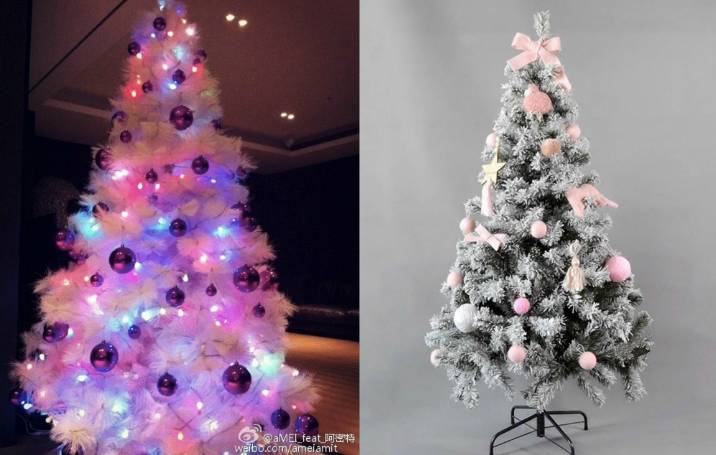 追求个性的小仙女们也会尝试俏皮的蓝粉色。天王嫂昆凌家的圣诞树,一家人都那么爱粉色,缘真的妙不可言。