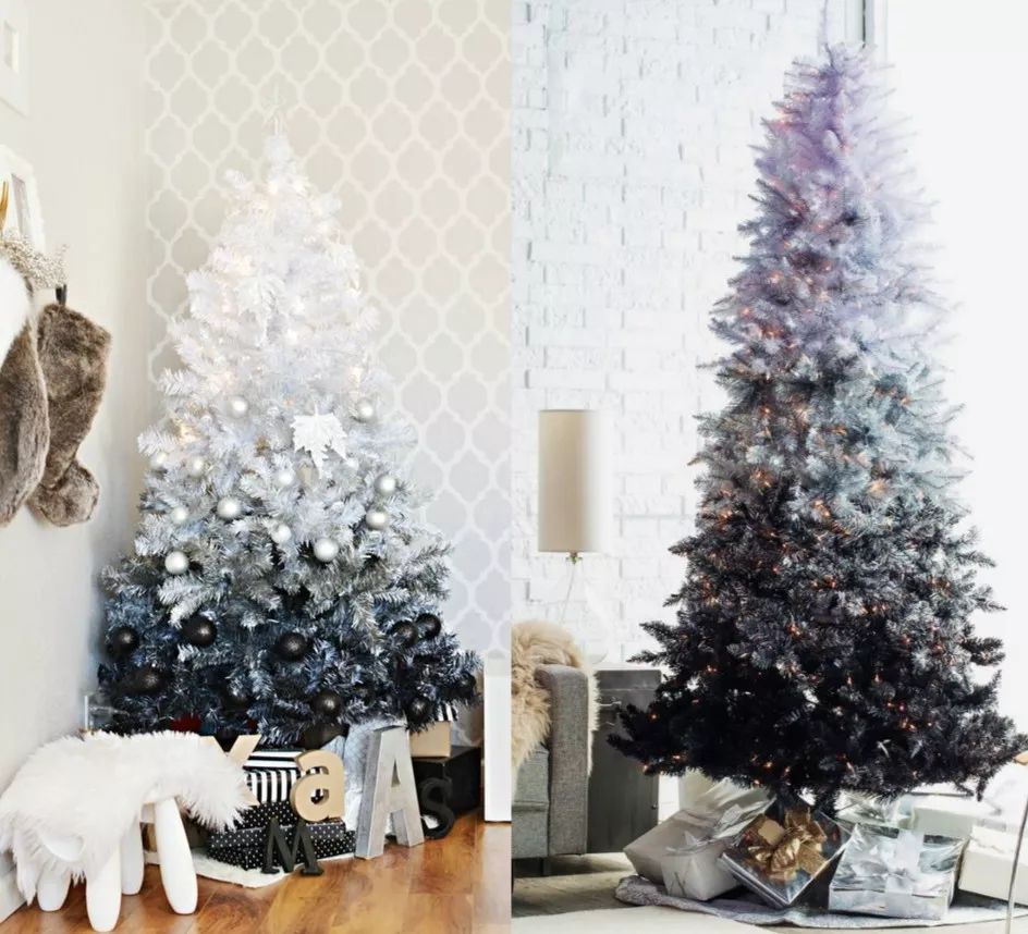 粉色虽然好看但挑家而且可供选择的搭配很少,相比之下,我们更喜欢黑白灰渐变圣诞树,大气又百搭。