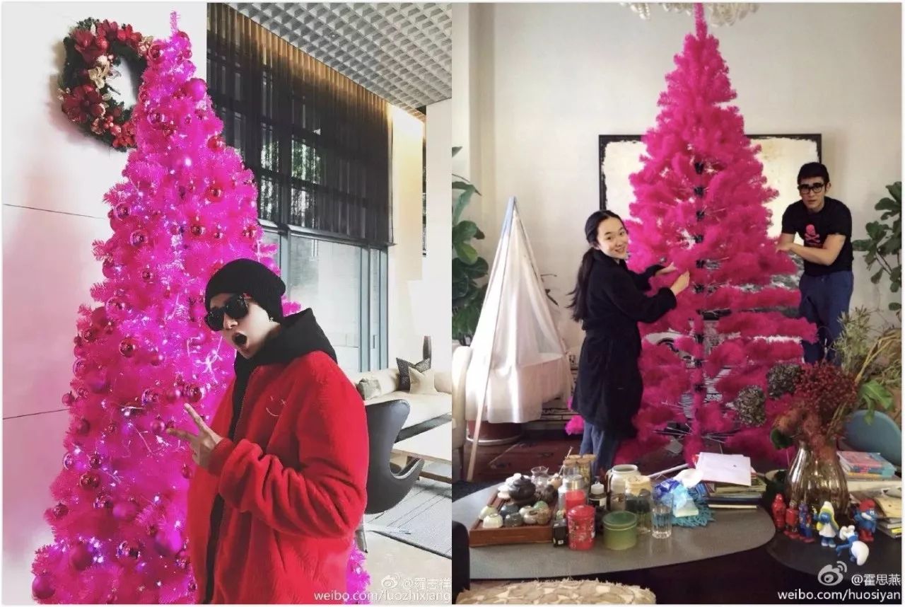 虽说选棵什么颜色的圣诞树只要自己开心就好,但像罗志祥和霍思燕家的玫红色圣诞树,没个复式大House还是不要尝试为好。