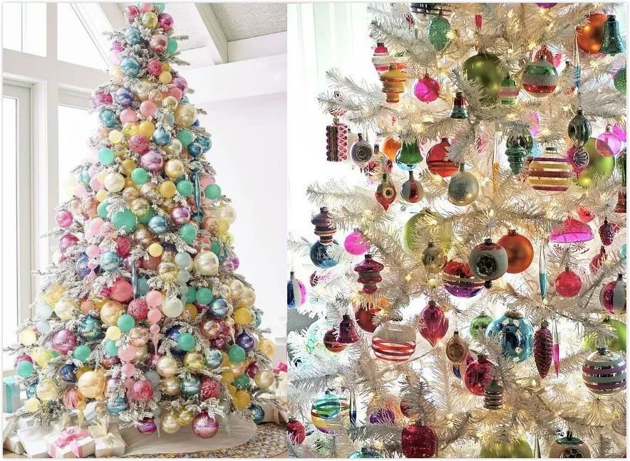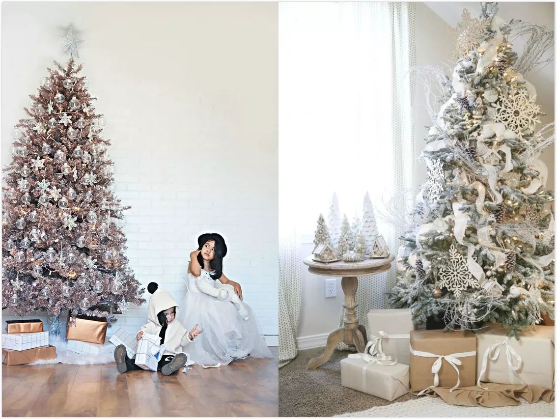 圣诞树最常见的就是绿色,还有全白以及半白,好像雪花掉落在树上的感觉。