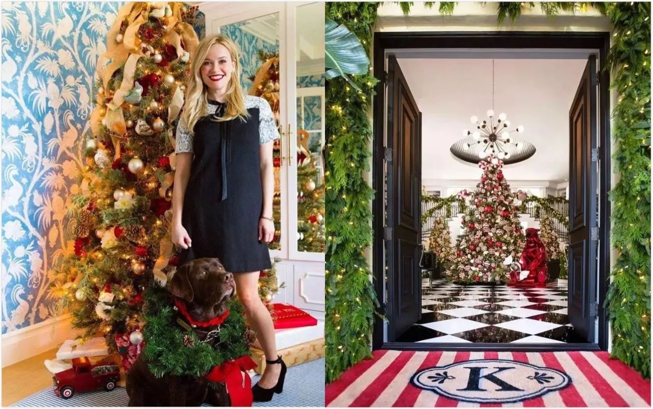 金银和红绿两种配色,都算是不会配错的圣诞配色。方脸影后和金小妹家都用了红+金+绿的圣诞色。