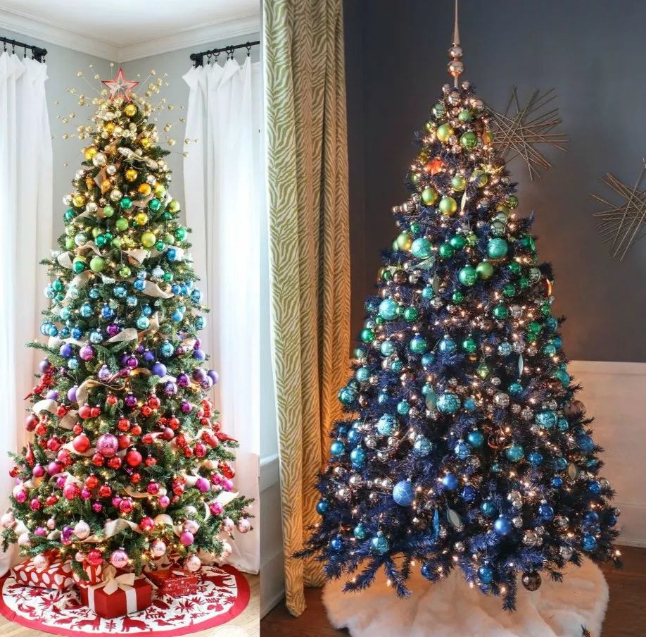 想要有时髦不俗气的圣诞气氛,在装饰圣诞树的时候就要用心挑颜色。