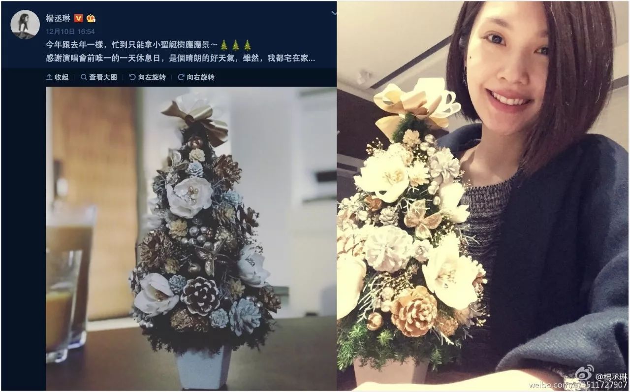 没时间闹腾大圣诞树,学杨丞琳拿棵小树应应景。