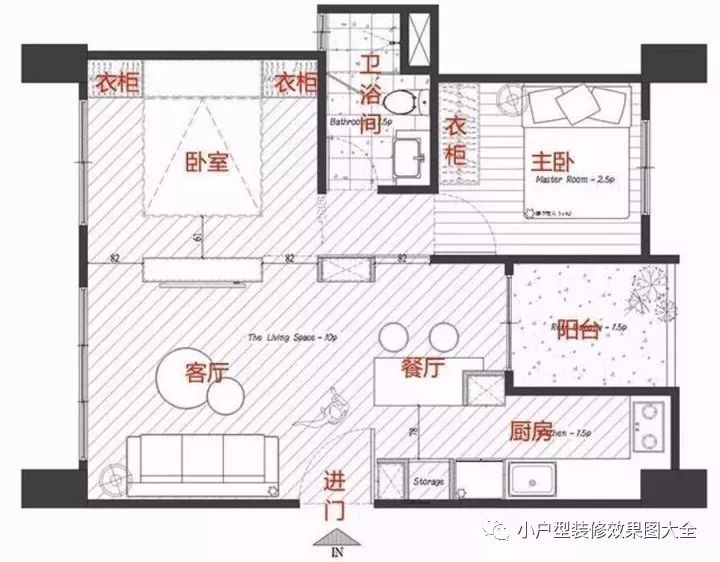 卧室的床也是一个隐藏的小机关设计,平时可以床,不用的时候或者是房间有其他用处的时候,可以将床内嵌在上方。
