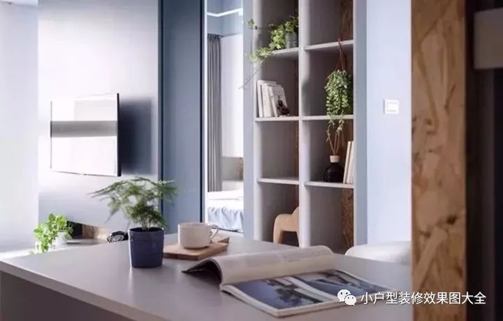 正对着门的设计也是一个奇特的存在,内嵌式壁龛展示架,上边摆放些书籍和绿植。