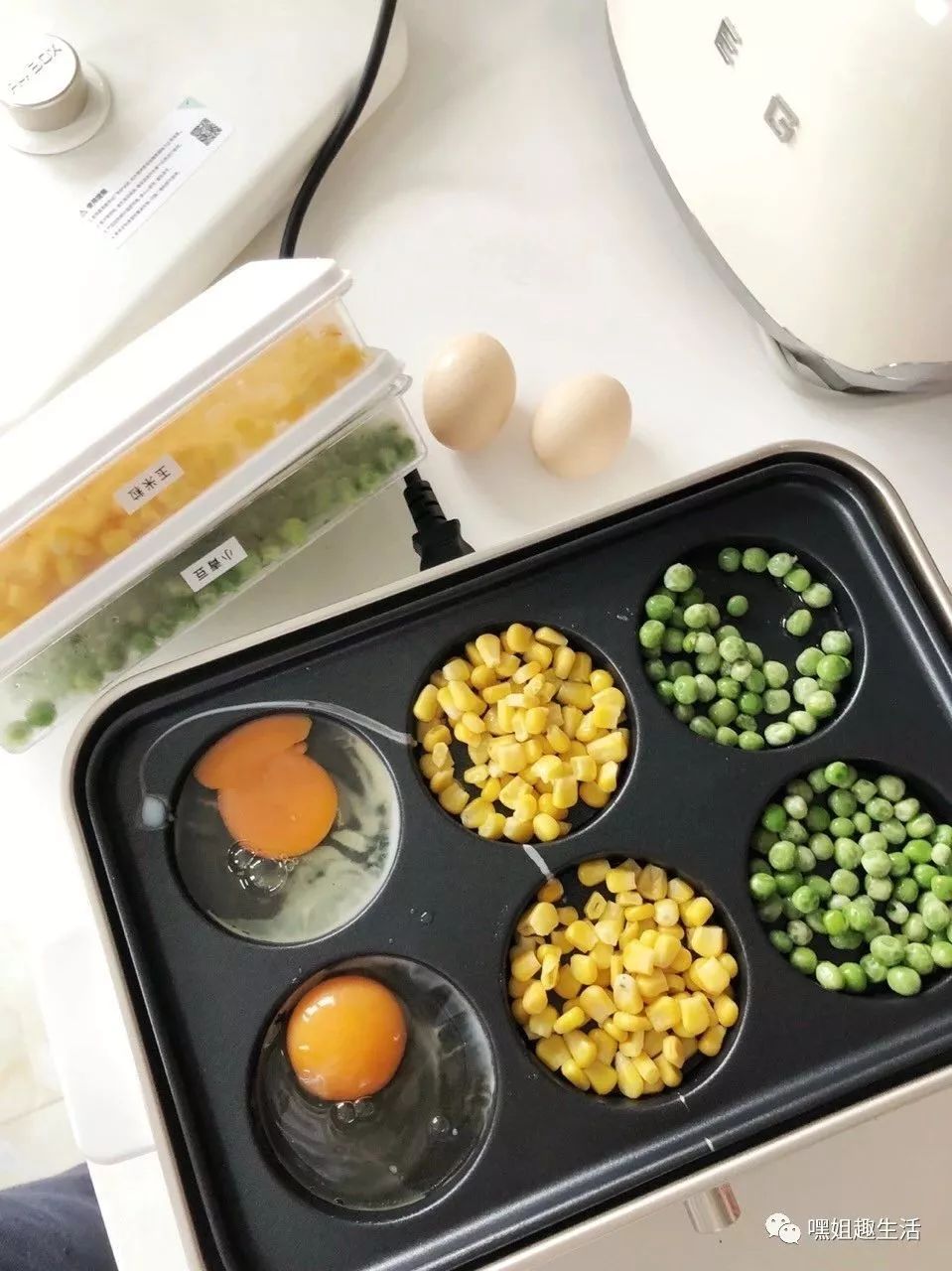 配套的材料包特别齐全,有硅胶铲和防烫手套以及密封袋。我买了3个盘,6格子的圆盘用来做早餐,既能煎蛋又能炒蔬菜。