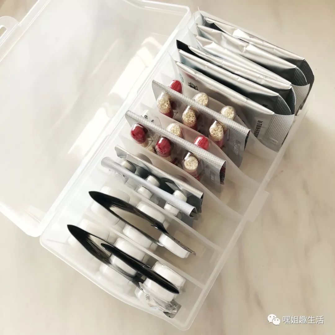 也是无疑中淘宝发现的,药箱里散落的药片可以集中收纳在一起。但是容量比较小,而且是日本尺寸也偏小,中国的一版药要对折之后放进去才行。