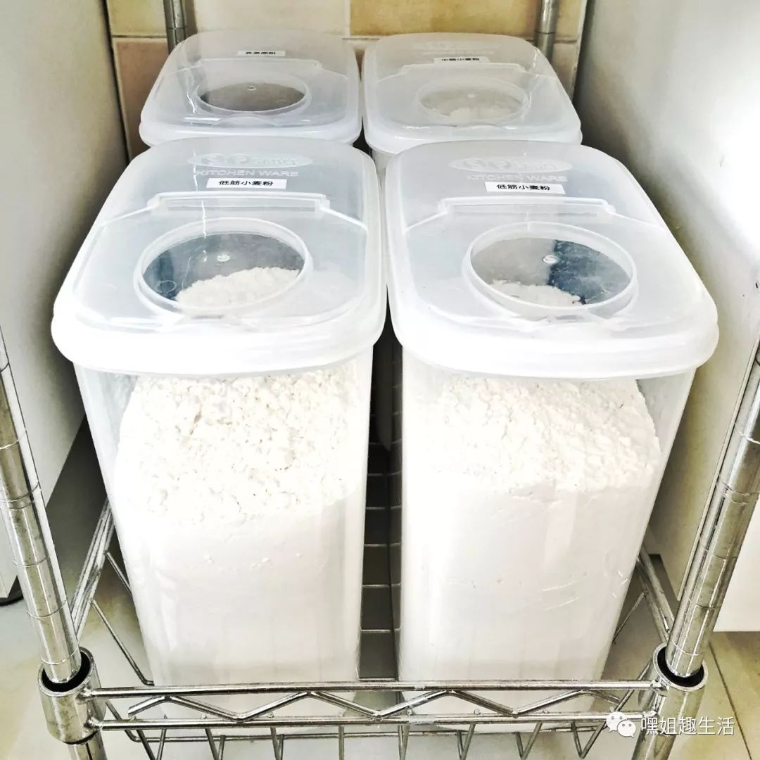 终于被我找到一款尺寸合适的面粉收纳罐,分装之后做好标签,拿取就变得方便很多啦。