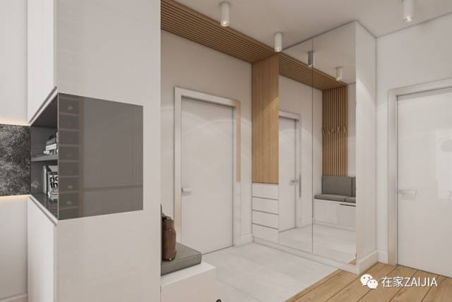 整墙收纳柜同样也适用于有狭窄玄关走廊的户型,内嵌式衣柜非但不会占用走廊的多余空间,反而还会多出一倍的储物空间。
