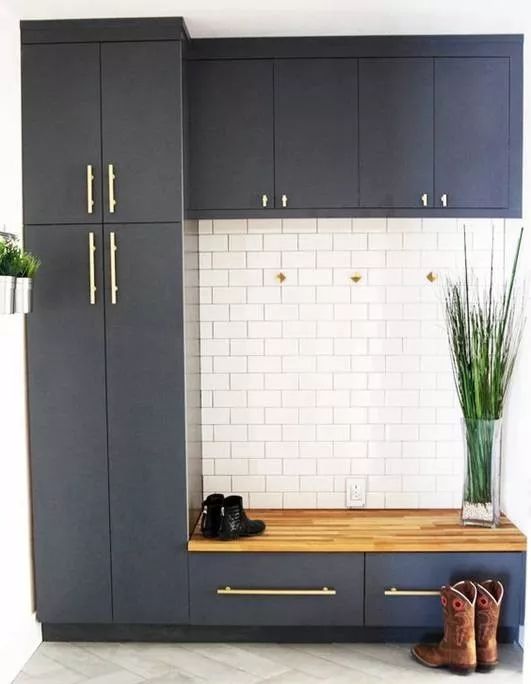 下方多做一排储物柜,还能做换鞋凳使用,一家三口出门排排坐,同时换鞋再也不用排队等。