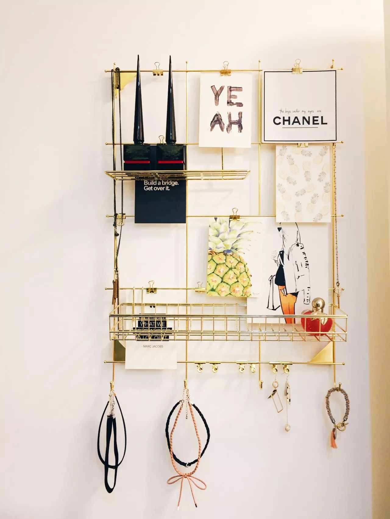 颜值控如我,10月份还剁手了不少颜值小物,比如这款宜家的金属格子架。收纳我最近常戴的几款饰品。