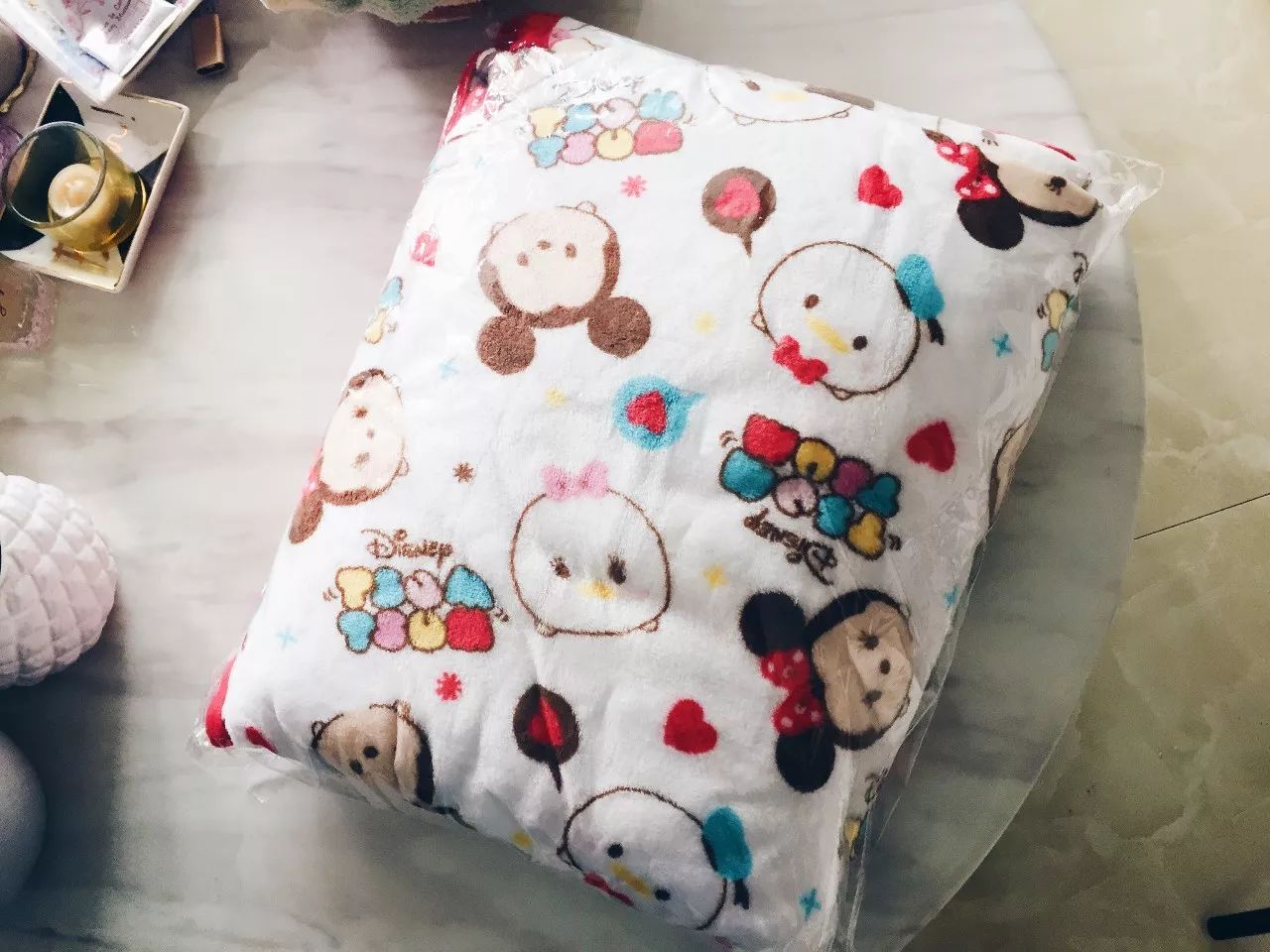 1号礼物:迪斯尼毛毯一条。是我在日本娃娃机里吊出来的,不仅是一条很厚实很柔软的大毛毯,还有我的好运气也一起送给你!
