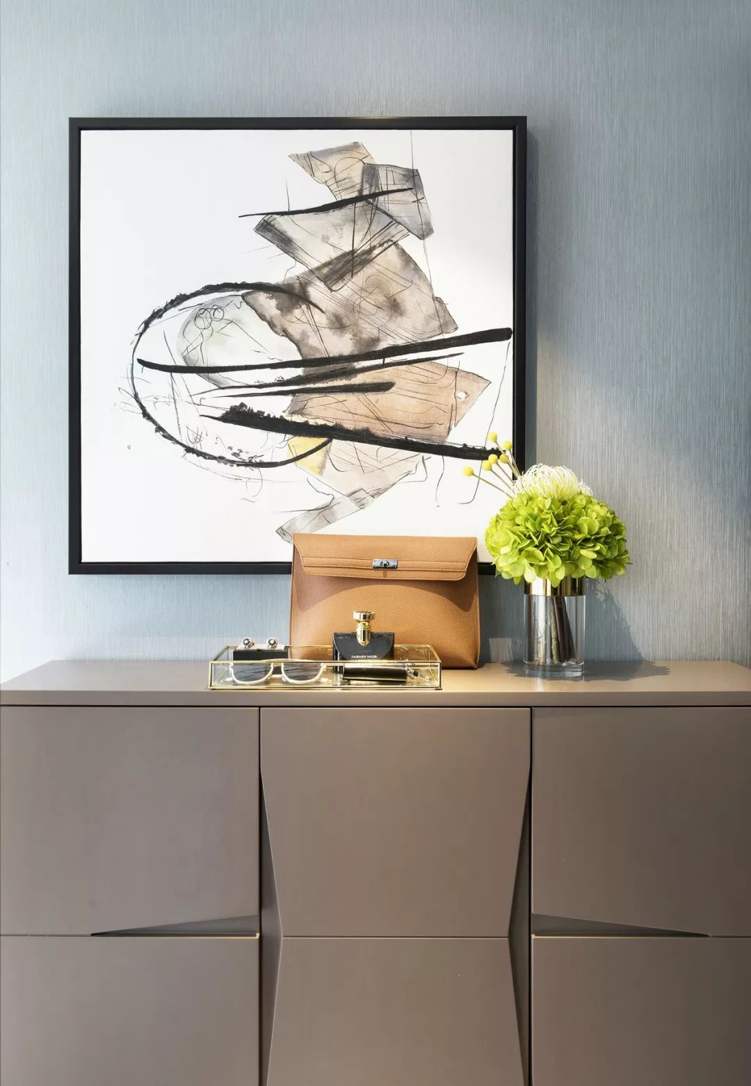软饰上选择后现代主义的画作、简约不乏精致的艺术品,以及疏朗明亮的绿植花束,静穆的艺术气质与细腻的感情于其中悄然生发,点亮居住者的内心世界。