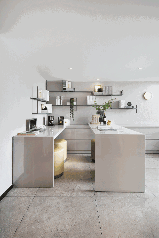 绘画专业出身的设计师贾红峰,熟稔运用莫兰迪色系的魅力,以高级灰做底,哑光质感的色调加以点缀,令空间色系与多元的生活情景,通过极致巧妙的妥协界限,演绎三个静谧通透、简约雅致的LOFT现代空间。