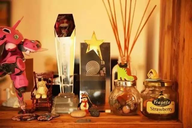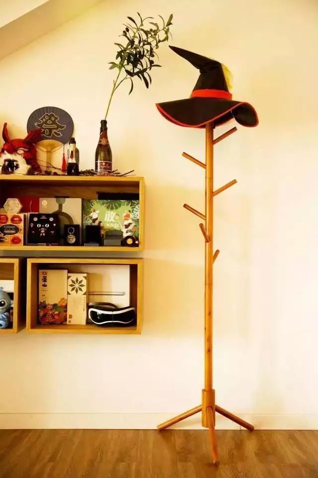 工作时是严肃正经的视觉设计师,而一旦回到家,沫霖就变回了萌萌的中二美少女。房间里堆满了马猴烧酒的女巫帽、DVA手办、bilibili靠枕等等。