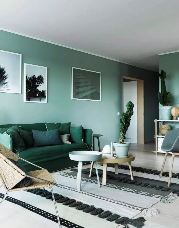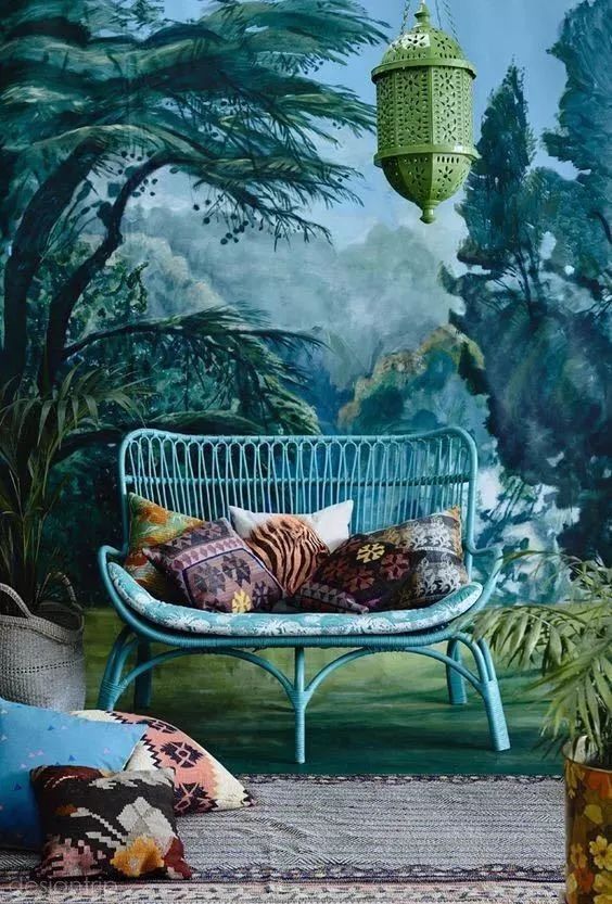 绿色生命力的象征用绿色点亮空间带你清爽一夏背景类墙壁与绿植的颜色相近营造出自然风的空间令人身心舒畅墨绿色端庄大气使得空间充满复古韵味高级感十足家具类绿色的沙发让步入客厅的人们眼前一亮朴素却不失韵味大型的沙发选用绿色帮助整个空间营造出清新的风格色调鲜艳明快深绿色的运用增加了空间的时尚感高贵雅致一个座
