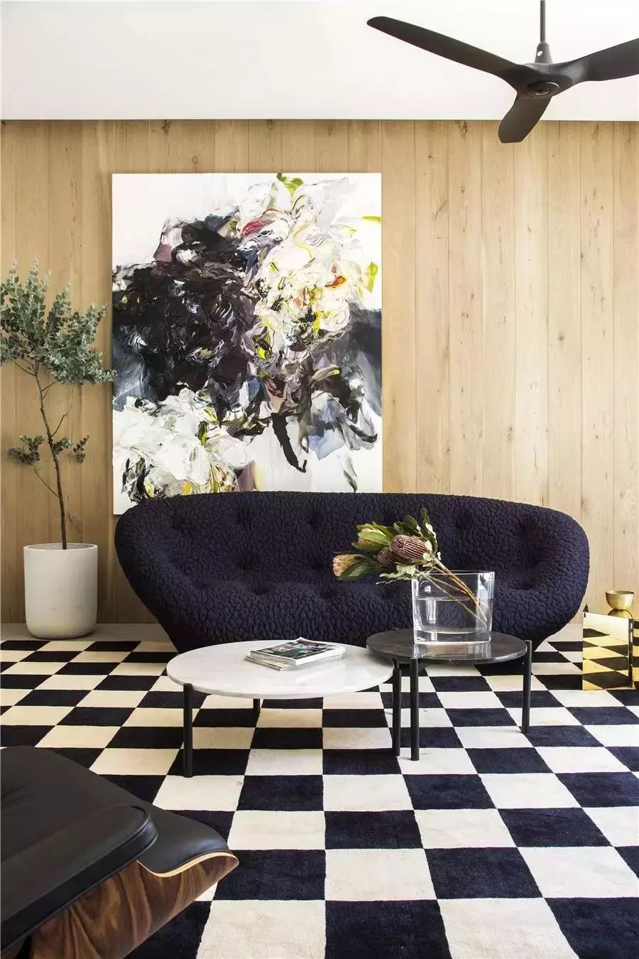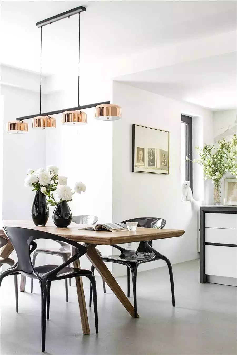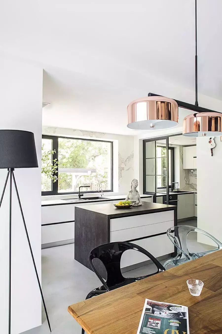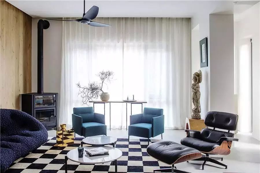 白色为背景,家具辅以黑色和原木色