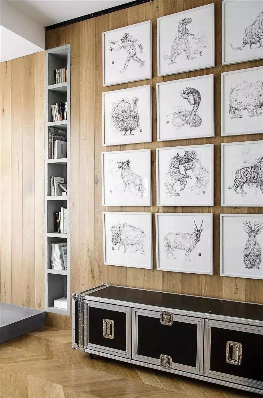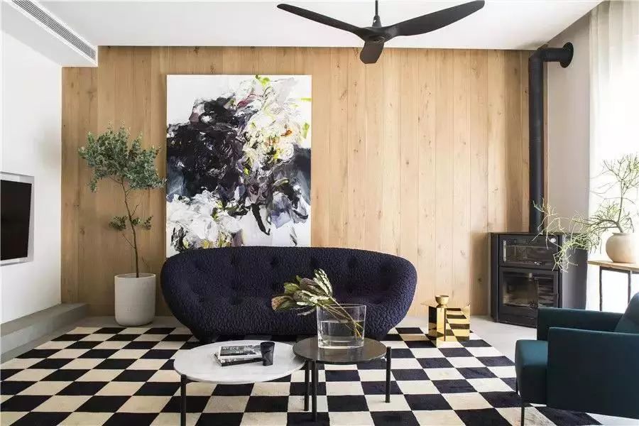 原木色与纷繁的艺术作品搭配