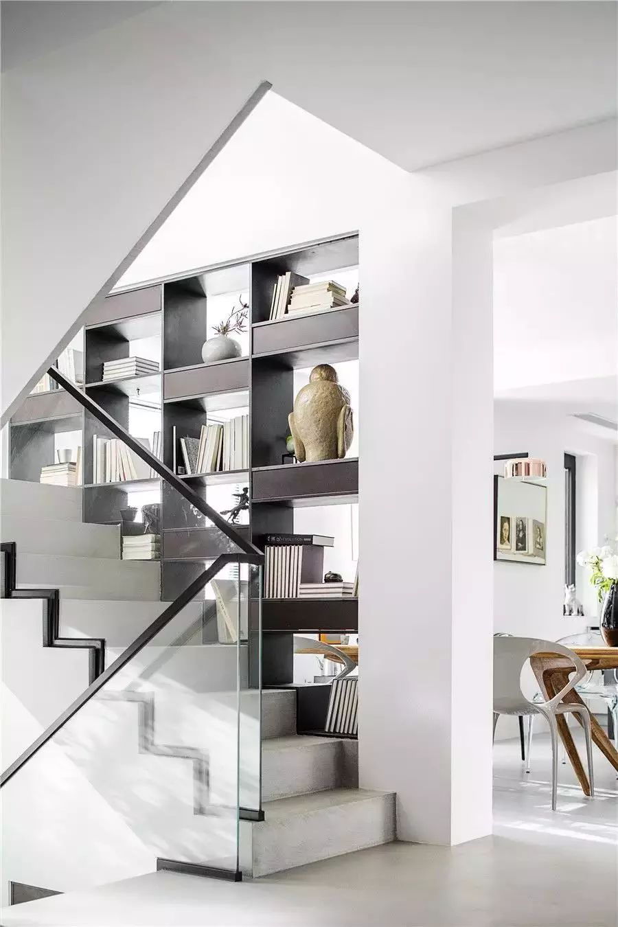 锈浊工艺金属书架串联起地下一层和一层