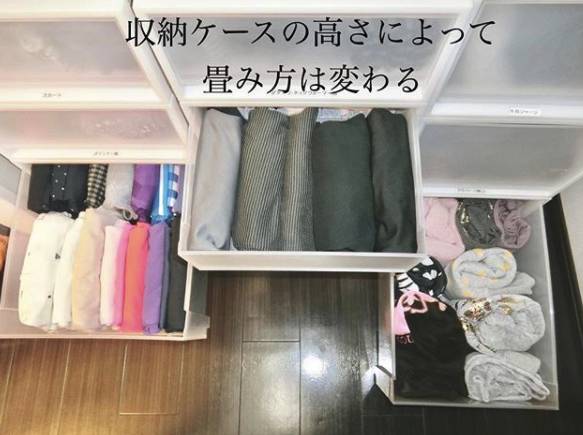 抽屉里的衣物要竖着收纳,真央喜欢用豆腐块的叠衣服方法。