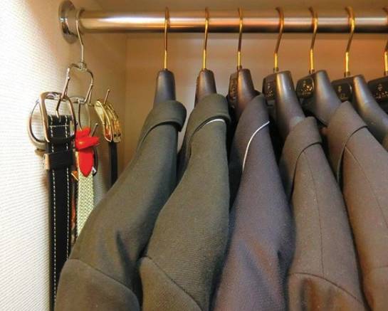 她晒的照片很少有长篇理论,都是细小到物件的收纳方法,比如皮带的收纳。