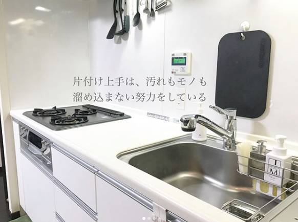 这是真央家的厨房,只放一小部分的厨具和清洁用品,其他都隐藏起来。