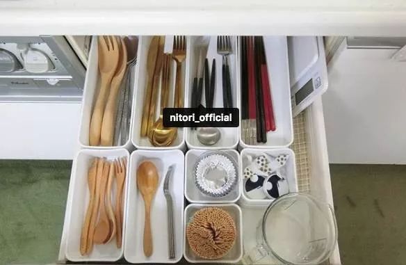 打开抽屉,厨具整整齐齐地收纳在里面,发现了和我同款的千纸鹤筷架。