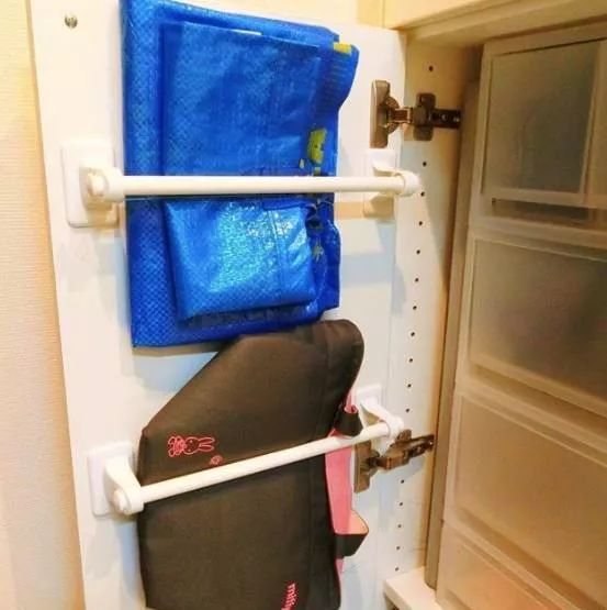 家里杂七杂八的环保袋。只需要保留几个质量好、耐用的,收纳在柜门后。