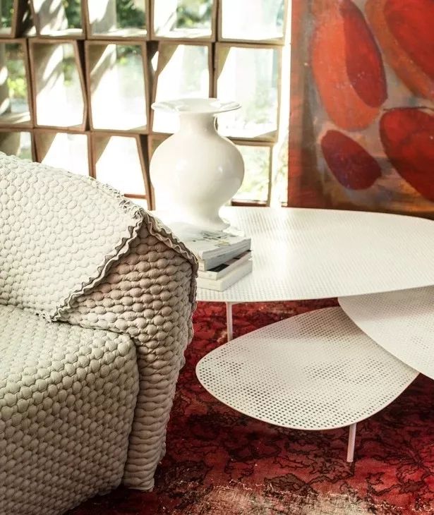 圆形大理石台面与锥形茶几腿的巧妙混搭