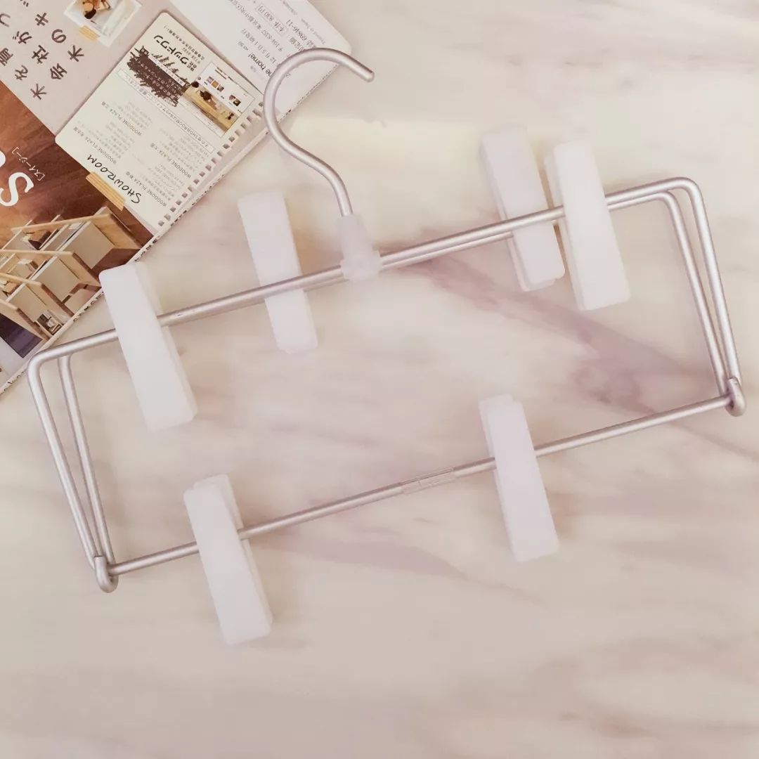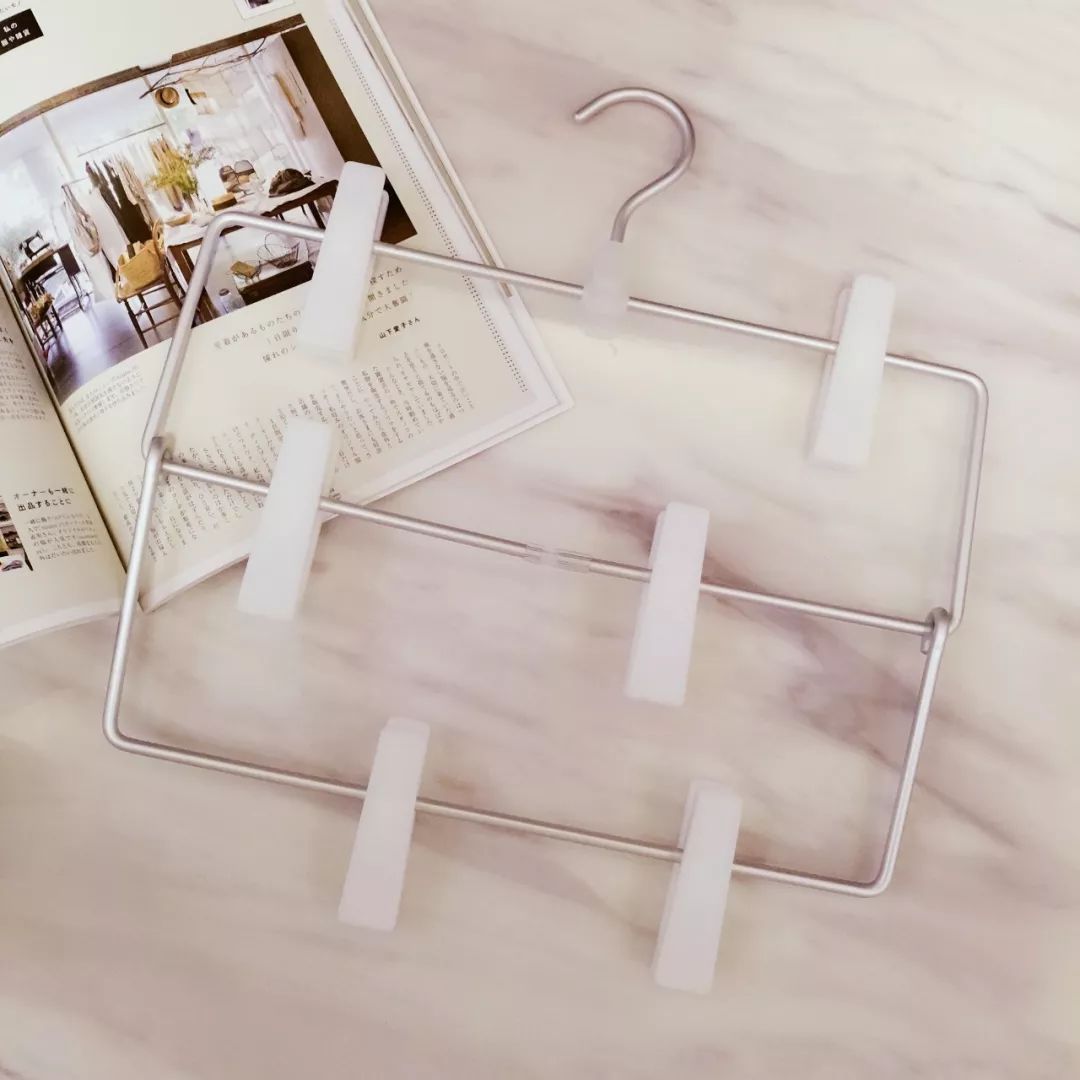能省下空间的,还有这款铝制衣架,来自MUJI,80元。适合夹多条裙子和裤子,放在衣橱里不占空间。