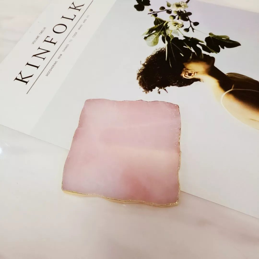 比如我新入的这款金边粉色天然石杯垫,62元,颜值妥妥,能做杯垫也能做烛台,握在手里心情都会好。