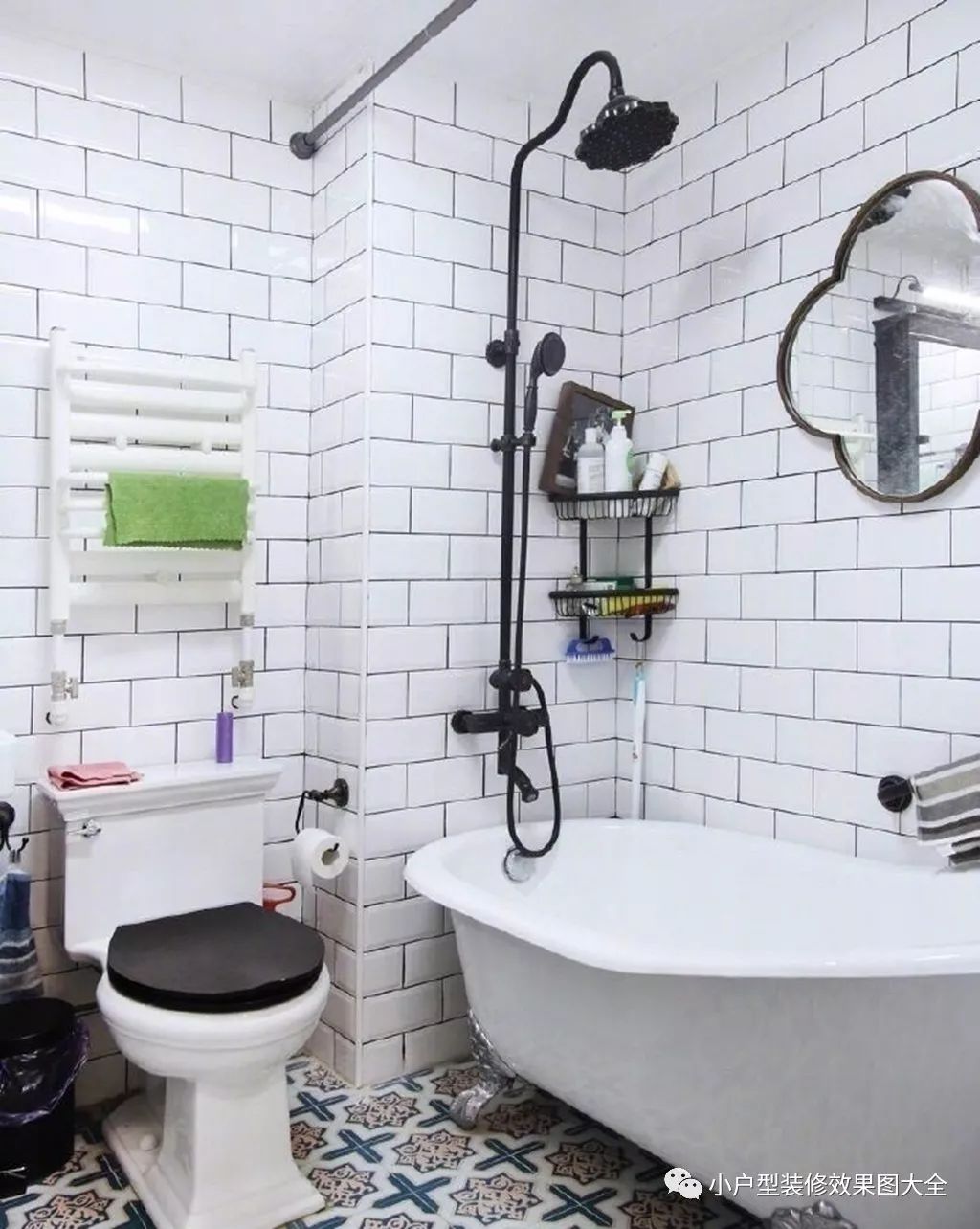 最后就是卫生间了,小小的卫生间并没有因为面积小而让我们失望,花色的地板和简单地白色的墙瓷砖让这个卫生间看起来更加的干净整洁,旁边带着的小小的浴缸更是触动了多少女生的心。