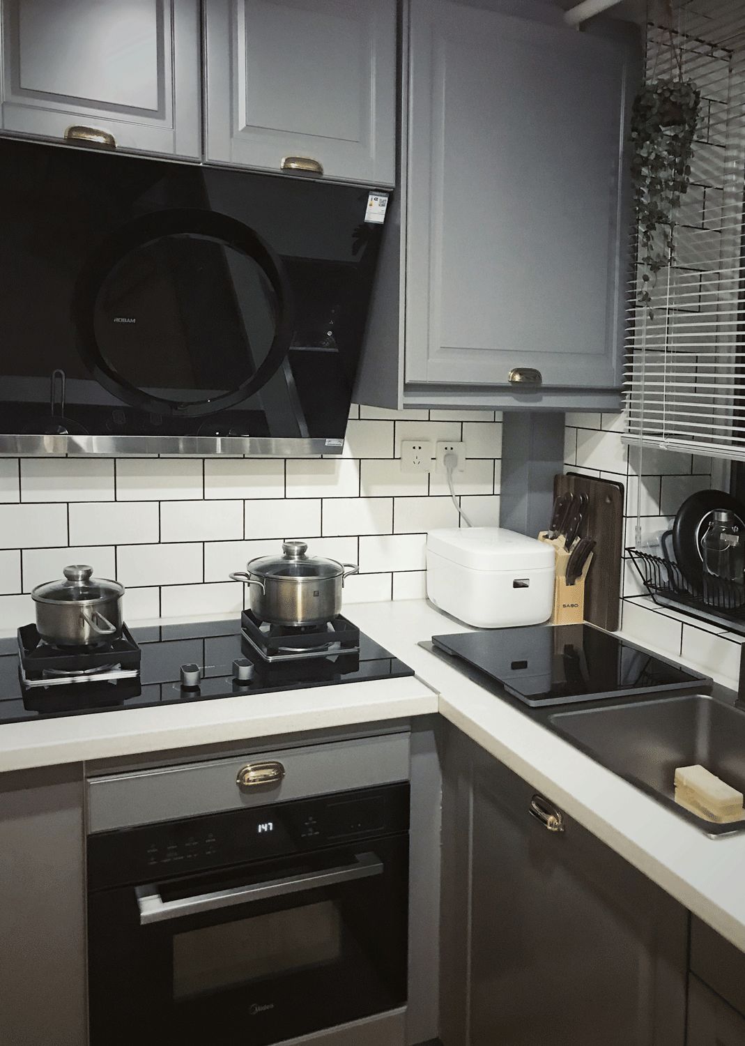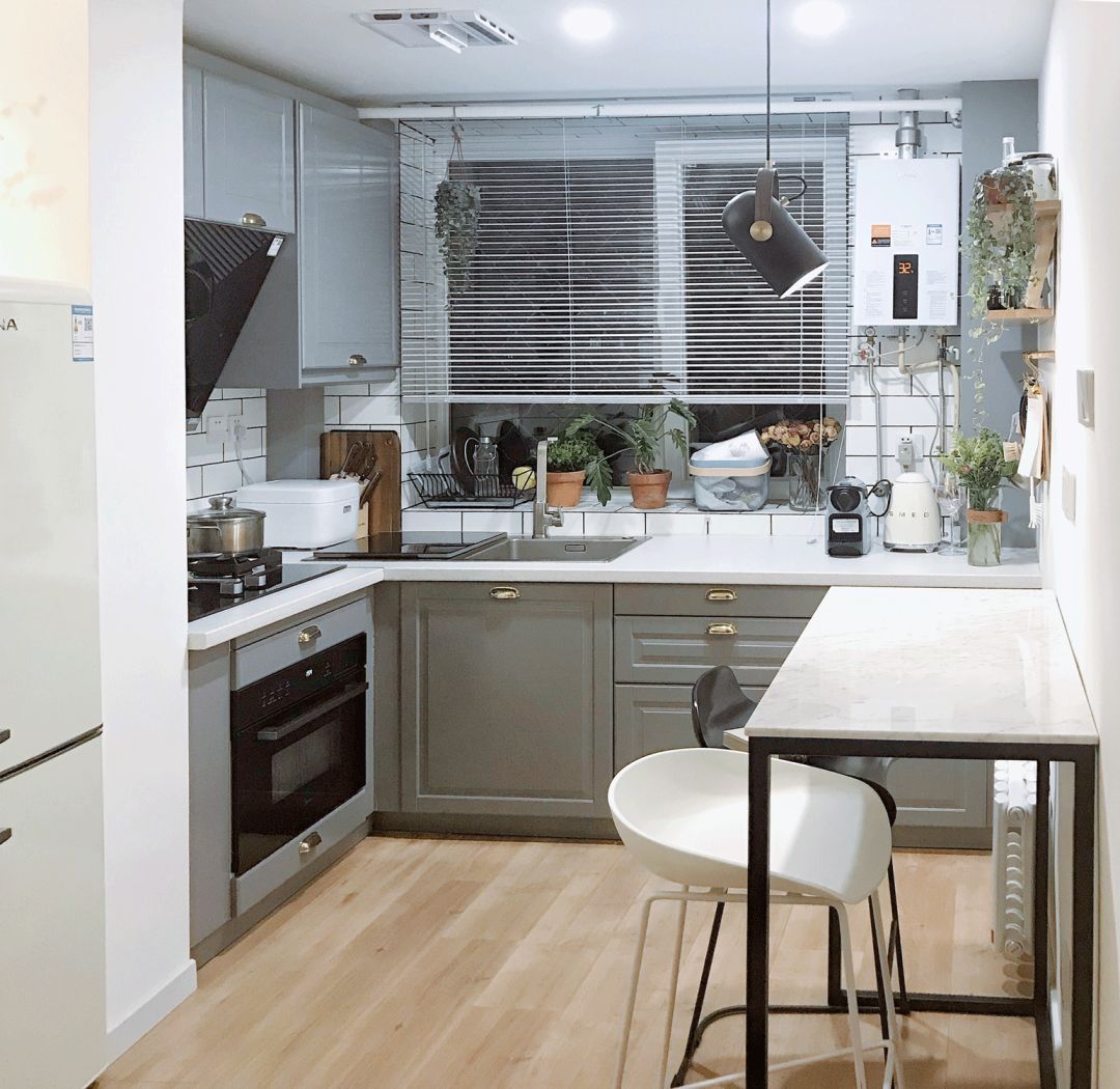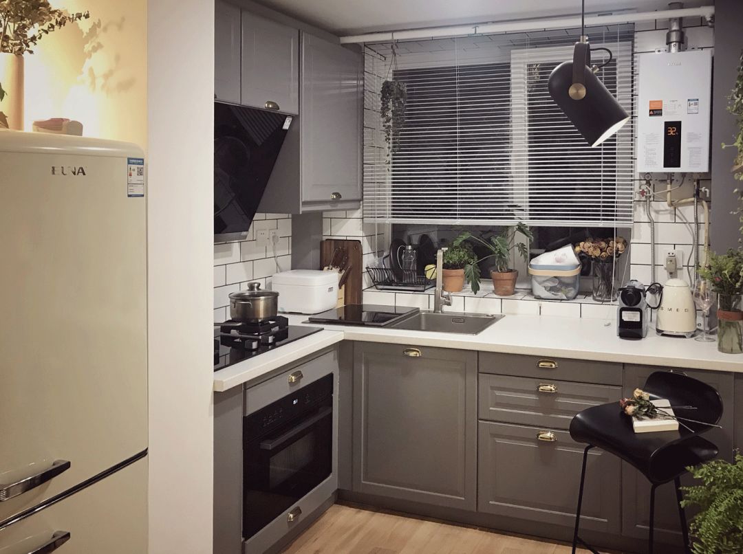 厨房的橱柜选了宜家,效果棒呆,这里要给大家一个小贴士,宜家如果你不买他们的油烟机是不会给你装烟机柜的,装的话另收400安装费。利用拐角的位置装了洗碗机,腾出做抽屉的地方。目前来说的话厨房的收纳空间是绰绰有余的。