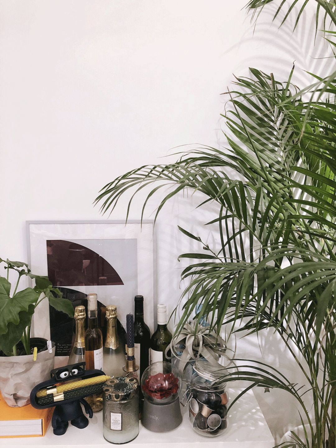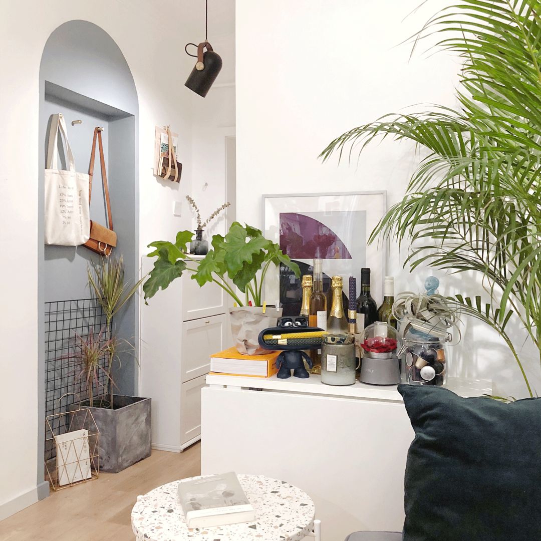 沙发旁的这个小柜子其实是个折叠桌,人多聚会就会变身,真的拯救小空间的实力派选手啊。