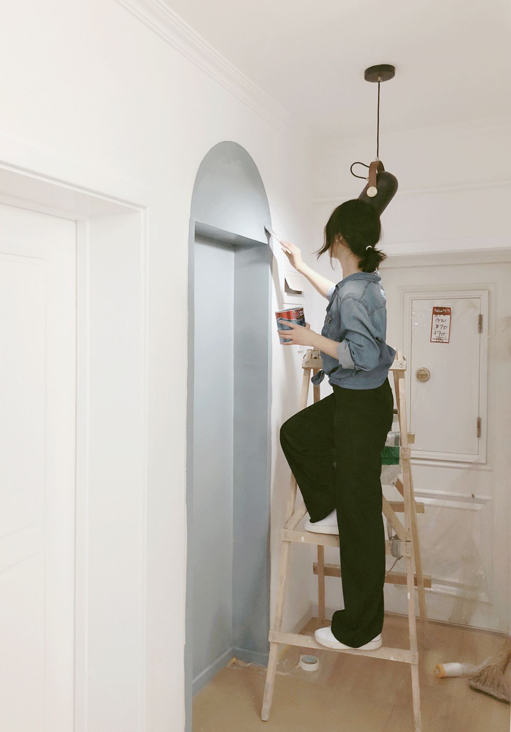 ▲自己动手刷门洞。