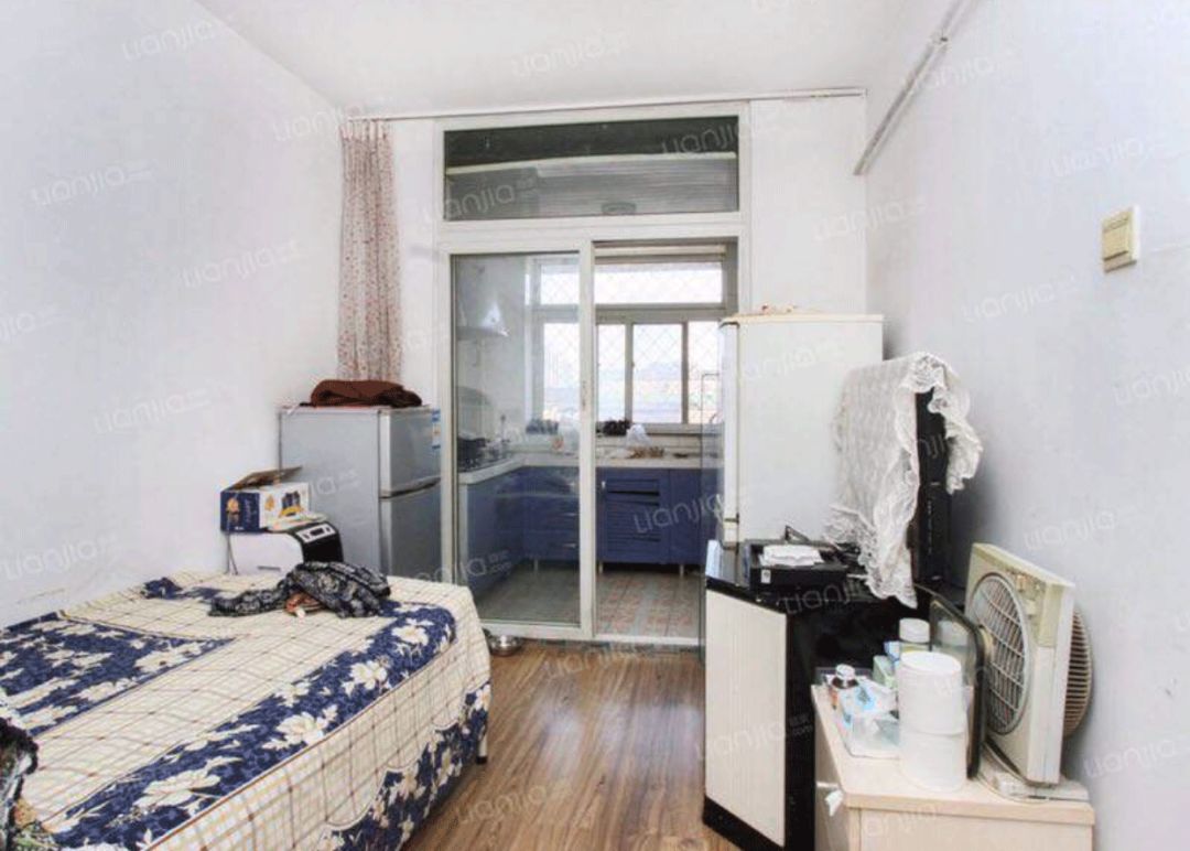 ▲原来的玄关长这样,客厅居然还塞了一张床。