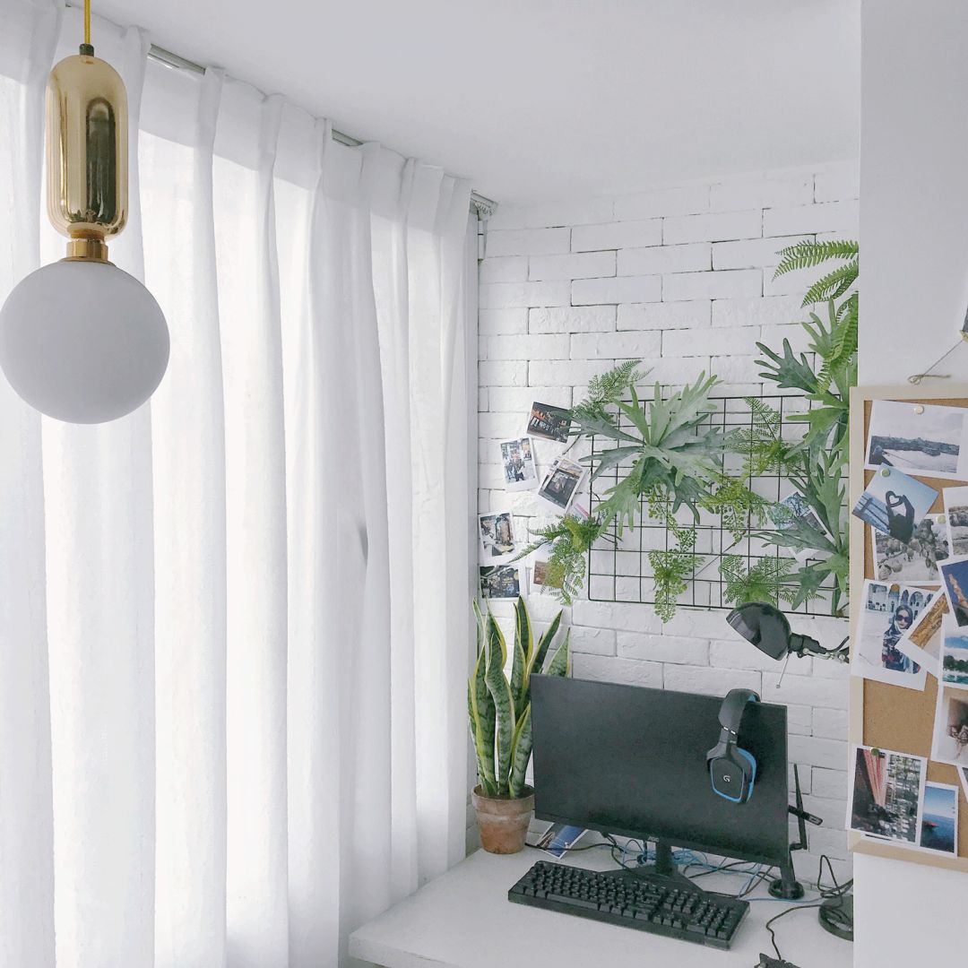 我们家有很多植物,绿葱葱的一片会让人心里很放松。你把一盆植物带回了家,就和自然有了联系。每天看着他们新生或是败落,你会跟着他们欣喜和遗憾,久而久之他们会变成你心里的一片花园。阳台的纱帘能够保护植物不被阳光晒伤,也能让屋里的光线变得柔和。
