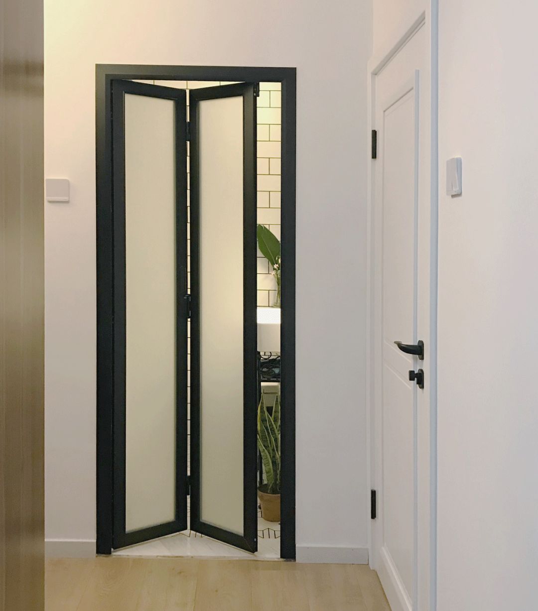 我们家玄关本来就小,一边还有两扇门(卧室和卫生间),既占地方又不通风,非常不方便。